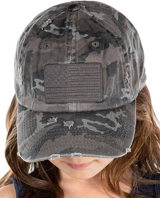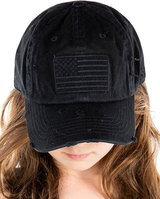 American Flag Distressed Baseball Cap - Black Camo