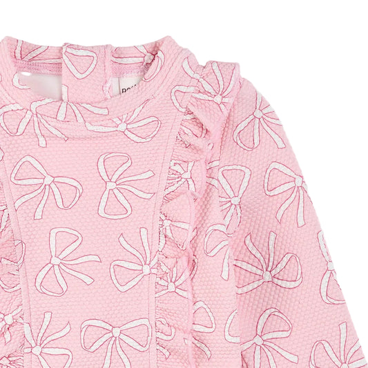 Bows Print on Light Pink Long-Sleeve One-Piece Swimsuit