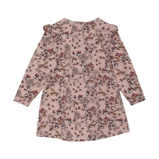 Long Sleeve Bamboo Ruffle Dress: Misty Rose Stripe