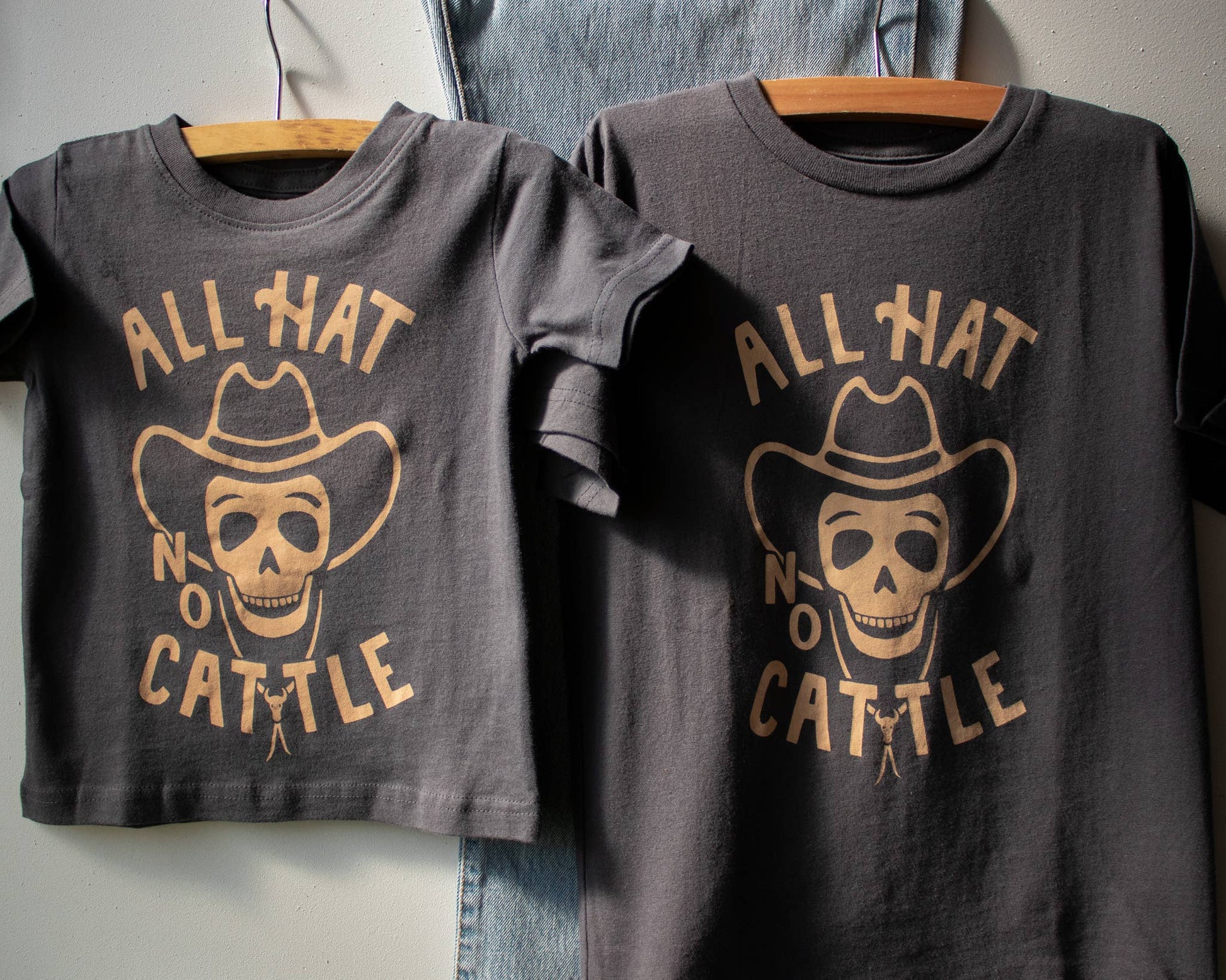 Let your little cowpoke saddle up in style with this playful western-themed tee! Each shirt is screen printed right here in Oklahoma City with eco-friendly, water-based inks, making every piece uniquely one-of-a-kind. The custom neck tag adds an authentic touch, while slight variations between prints keep things genuinely original. Perfect for kids who love the wild west spirit—comfort meets character in every wear.