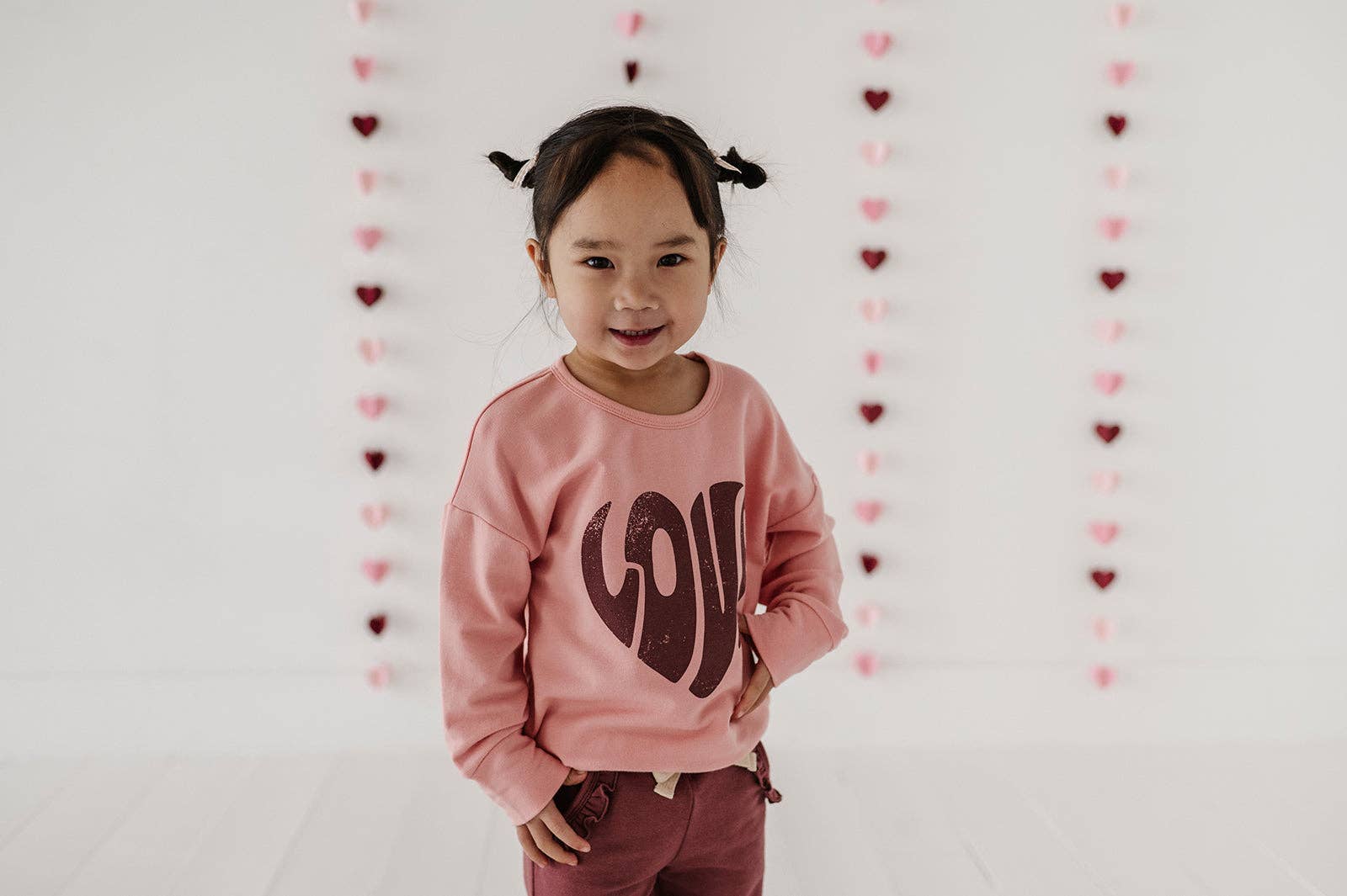 The Love Drop-Shoulder Pullover combines comfort, durability, and contemporary style in one essential piece. Crafted from a bamboo-cotton-blend fabric, it feels soft against the skin and offers just the right amount of warmth, making it ideal for cooler days or layering during colder months. The drop-shoulder design adds a modern, relaxed aesthetic that pairs effortlessly with Joggers or Leggings. Available in one fun graphic, this pullover is a versatile addition to your child’s wardrobe. Its easy-care fabric is built to withstand frequent washes while maintaining its softness and shape, making it a favorite for parents and kids alike.