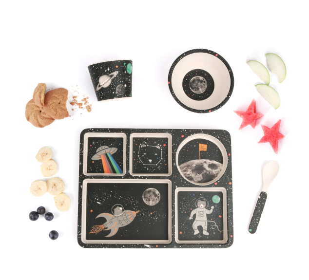 Your little one will feel out of this world with their own dinner set as bold as this. With their feet off the ground and a spoon in their hands they'll be able to achieve anything, including devouring that pile of vegetables!