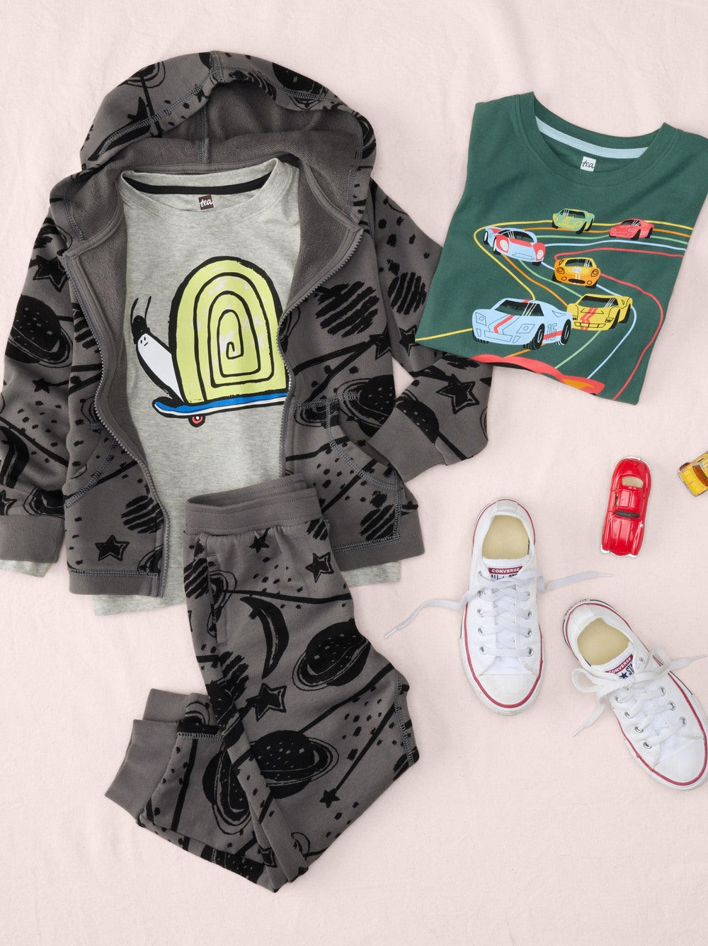 These joggers are out of this world! Made of super-soft and lightweight 100% French cotton terry joggers. On-seam pockets and a fully functional interior drawcord will make these a wardrobe favorite. Pair with one of Tea's graphic tees for an easy-dress stylish outfit. Full length.