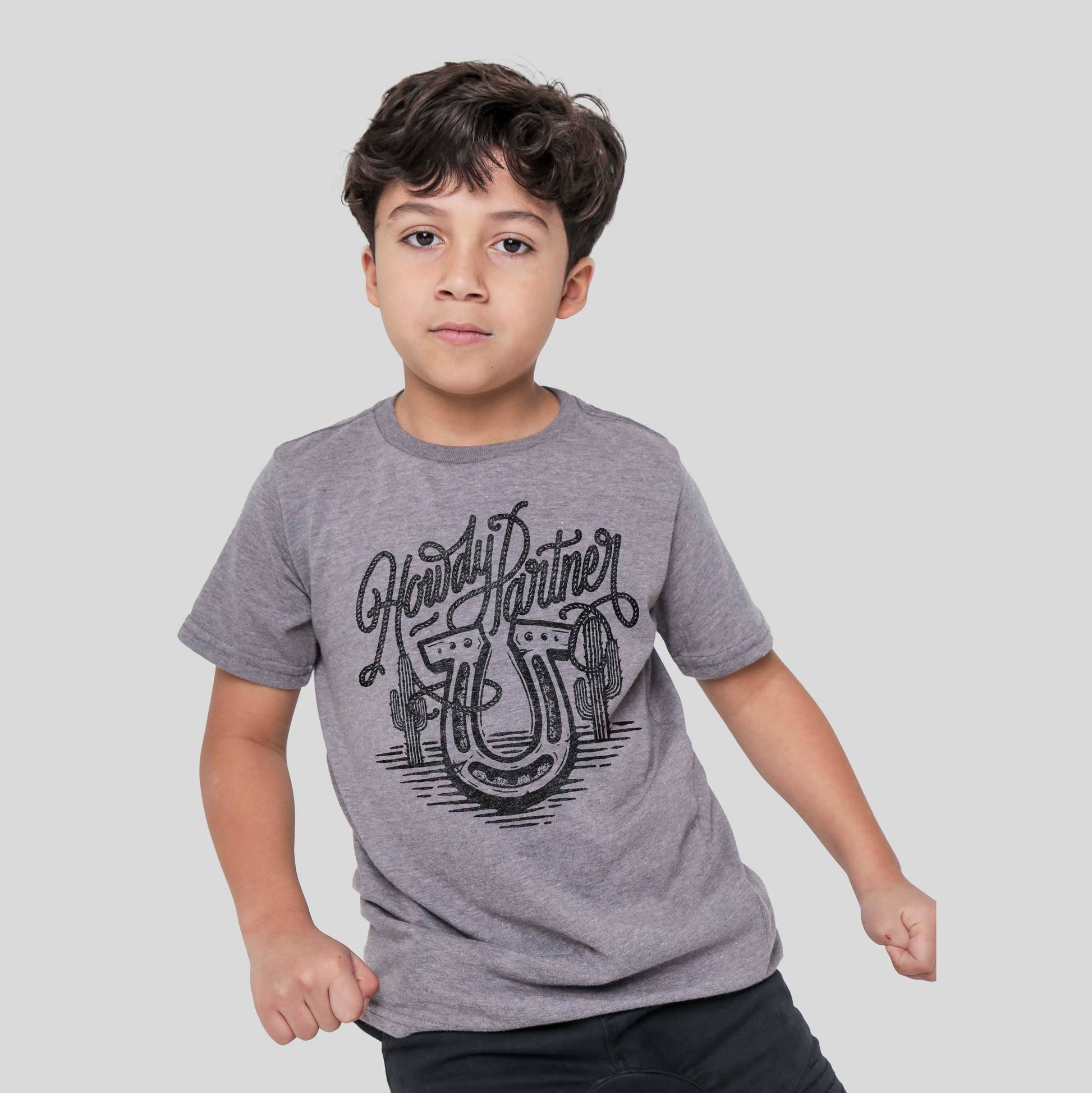 Kids Howdy Partner Western T-Shirt Grey Graphic Tee