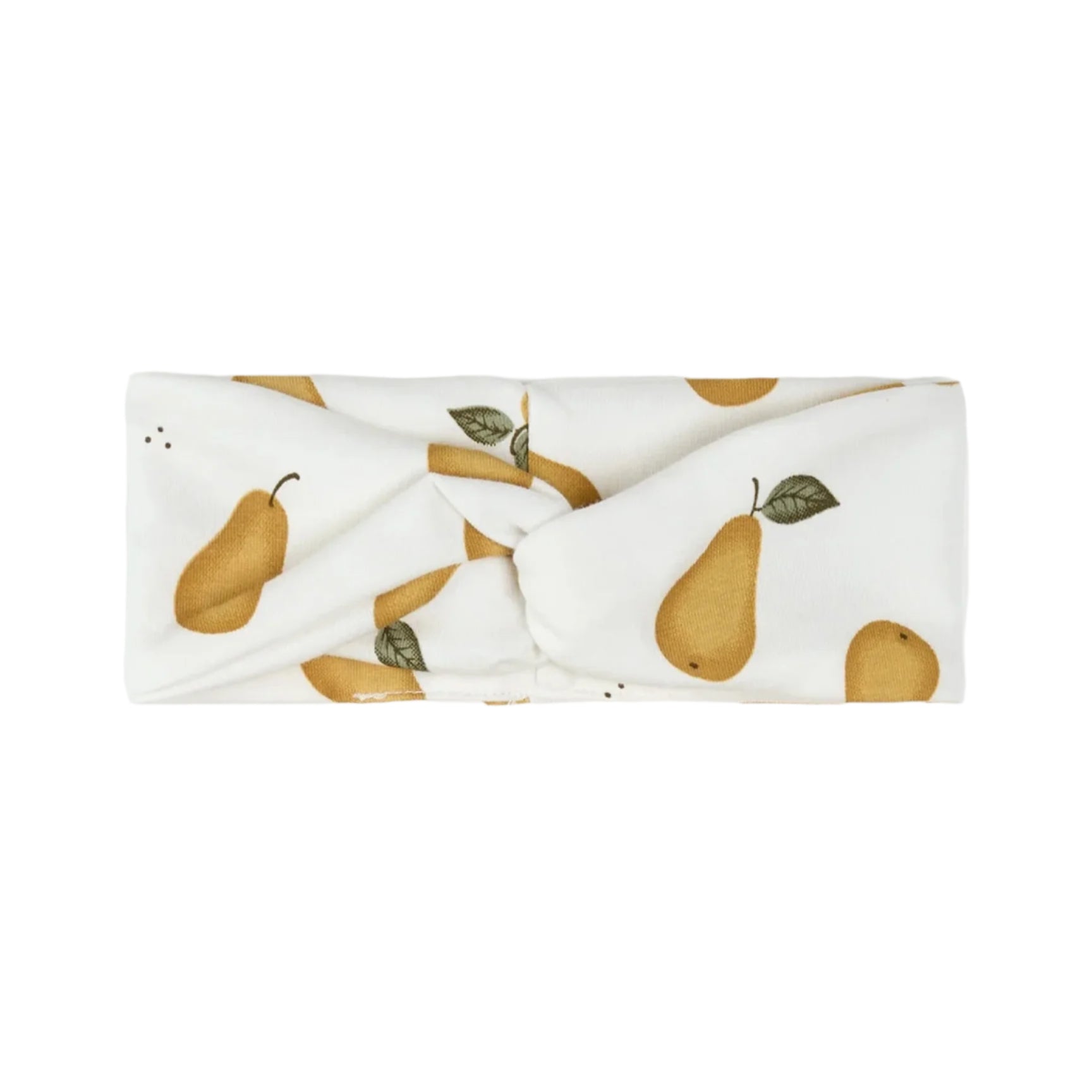 Bring a touch of whimsy to your autumn outfits with the Gold Pears Knit Headband. Made from breathable, gently stretchy fabric, it ensures a snug and comfy fit. Perfect as a sweet gift to celebrate new arrivals!