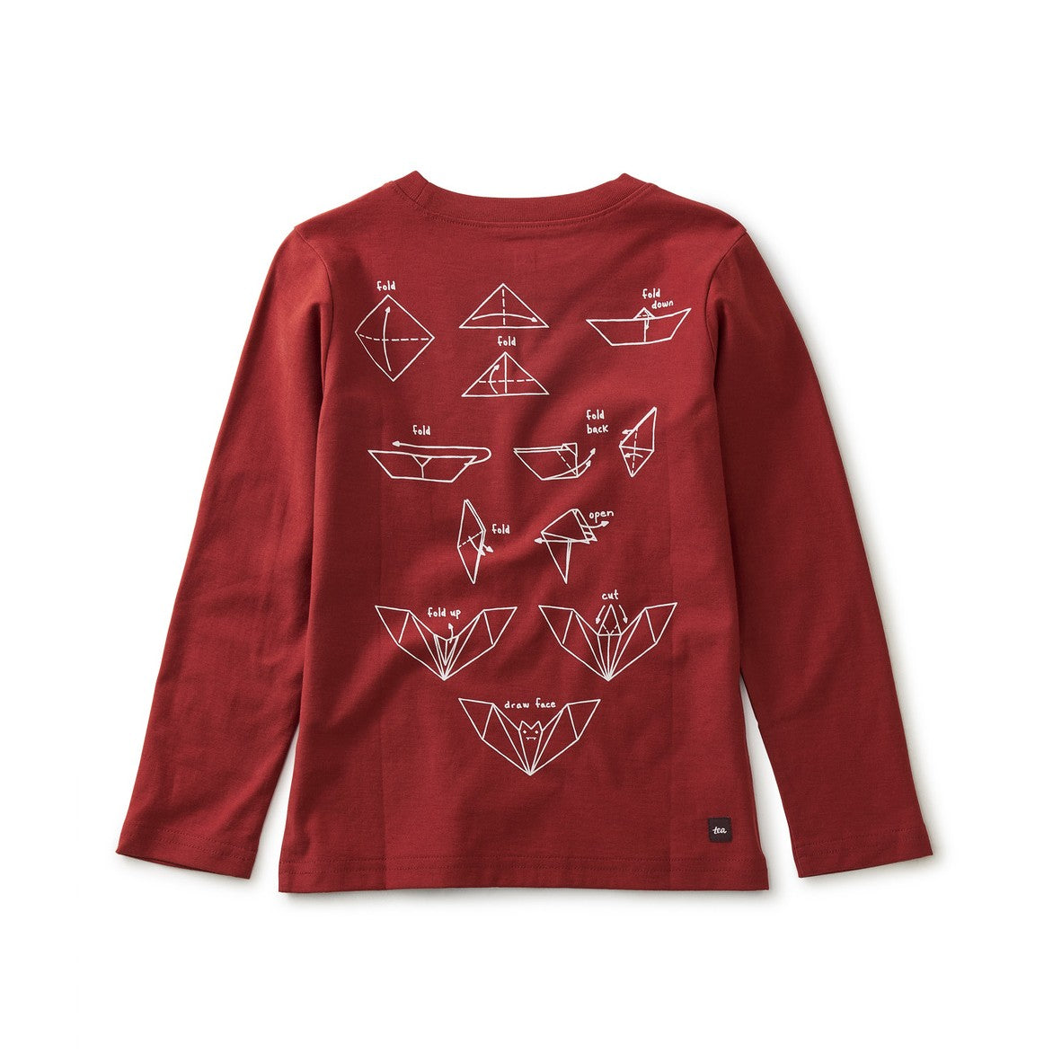 Beautiful origami bats appear on the front of this tee, with a step-by-step illustration to DIY your own own the back. Crafted from 100% soft cotton jersey.