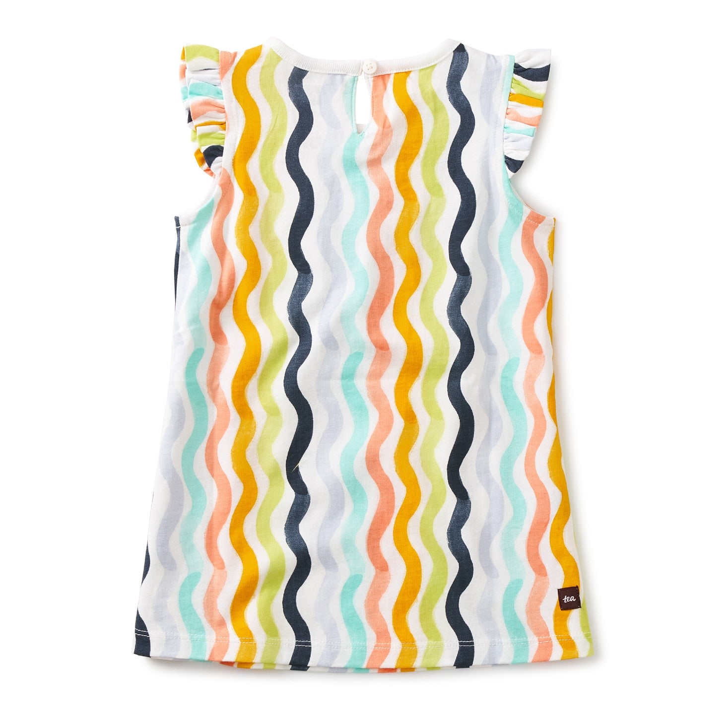 Ruffle Shoulder Baby Dress: Rainbow Wave
