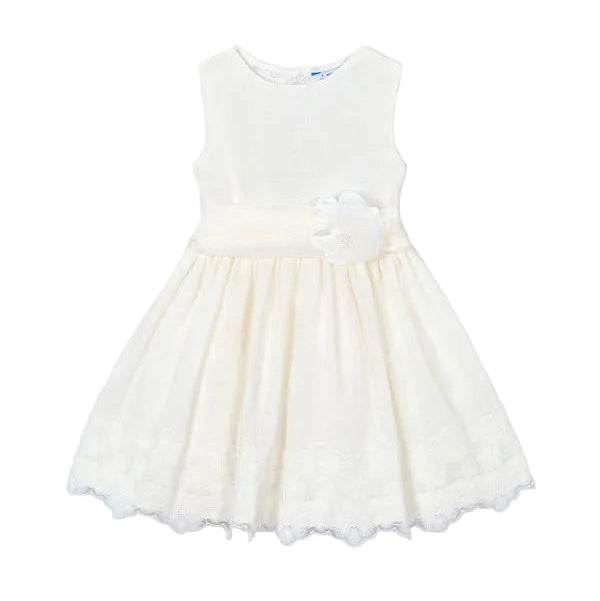 This adorable white dress is pure magic! Twirl-worthy lace back detail makes every girl feel like a princess. Super soft and comfy cotton-blend fabric keeps her happy all day long, whether she's playing, dancing, or posing for photos. The flowy skirt is perfect for twirling, and the pretty lace back is the cherry on top. Lined with cozy cotton so she stays comfy from morning to night. Perfect for parties, special events, or just feeling extra fabulous!